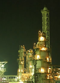 工場内の老朽化したコンクリート製煙突をリフレッシュいたしました。構造面での耐力の向上を図り、さらに幾何学デザインによるペイントで古く重々しかった煙突が軽快かつ場内のシンボルとなる美しいものへと一変いたしました。