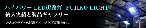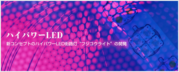 このたび、従来の有毒ガスを使用した蛍光灯やキセノンランプに代わるハイパワーLED街路灯(フジコウライト)をシリーズ製品化し、皆様にお届けできることとなりました。 |