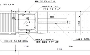 老朽化した本社正門を重厚で洗練されたステンレス製門扉に改修しました。重厚感があり、保守警備上の規制をはじめ埋め立て地である現場の地盤沈下の問題などもクリアし、美しく洗練されたデザインによる門扉を完成させました。