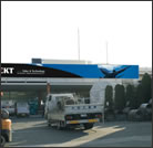 工場内のメンテナンス用ステージの手すり部に企業アピール用のグラフィカルな看板設置をご提案しました。前面道路より見える格好のポジションに全長20メートルの看板をひとつのキャンバスに見立て、迫力のあるアピール度の高いものにとのご要望に対してお応えいたしました。現在、他の環境改善プログラムとともに進行中です。