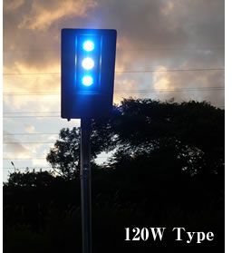 | 弊社のハイパワーLED街路灯の最大の特徴は、完全防水型の白色LEDと青色LEDを組み合わせたコンビネーションライトを実現し、同じハウジング機構を採用した60Wクラスから150Wクラスのシリーズ化を実現しました。また、お客様のご要望に応じて、白色LEDと青色LEDモジュール数の組み合わせを選択することが出来ます。 青色はリラクゼーション効果や、防犯効果などが期待されますが、これらの効果については、大阪府立工業高等専門学校と共同研究中で、今後の研究成果が期待されます。 |